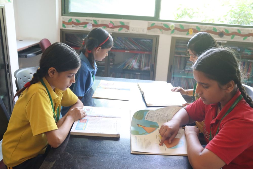 Students reading in the library at Chaitanya School, Best CBSE School Near Me